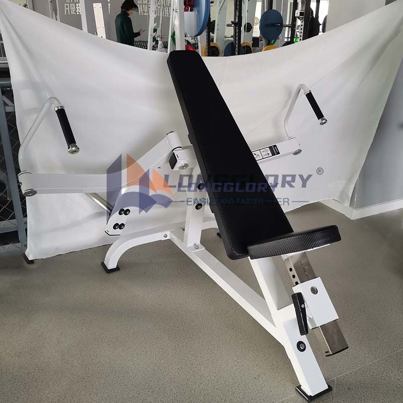 1. तुमच्या स्वतःच्या उंचीवर आधारित सीटची उंची समायोजित करा जेणेकरून हँडल खांद्याच्या उंचीसह संरेखित होतील. योग्य वजन निवडा (सामान्यत: आपण 12 पुनरावृत्तीसाठी हाताळू शकता असे वजन).