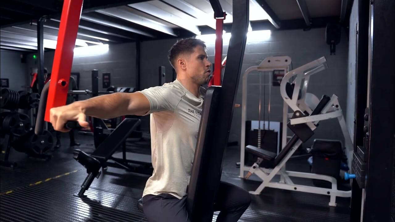 First, get into the correct position. Sit on the floor with your knees bent and feet flat on the ground. Slightly draw your knees inward and grasp the handles of the Pec Fly Machine with your palms facing downward. Keep your upper body upright, and relax your neck and head. This posture helps maintain balance and stability.