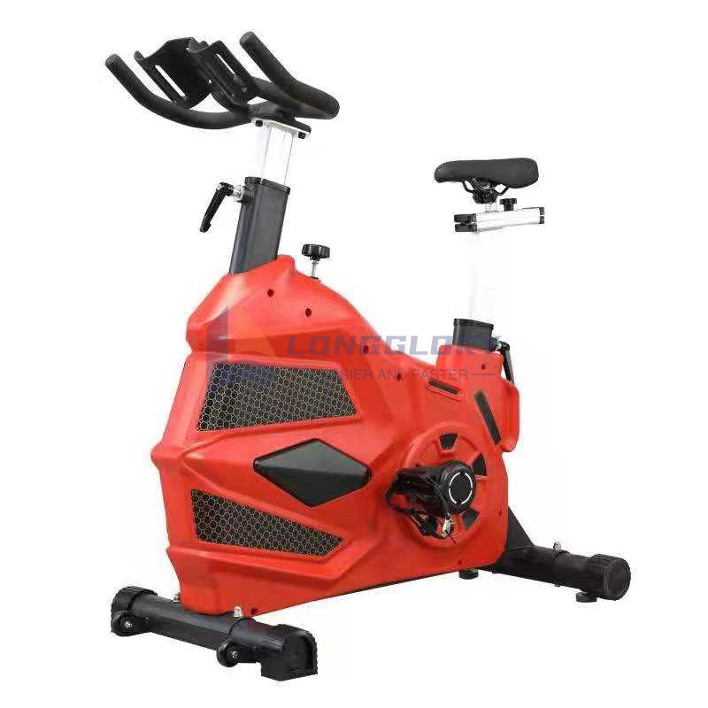 मल्टी-फंक्शन एलसीडी मॉनिटरसह सुसज्ज, ही इनडोअर स्पिन बाईक वेळ, वेग, अंतर, कॅलरी जळलेल्या आणि हृदय गतीचा मागोवा घेते, जिम सदस्यांना रिअल टाइममध्ये त्यांच्या कामगिरीवर लक्ष ठेवण्यास मदत करते. समायोज्य पट्ट्या आणि सुरक्षित ब्रेकिंग सिस्टमसह नॉन-स्लिप पेडल प्रत्येक वापरकर्त्यासाठी सुरक्षितता जोडतात.