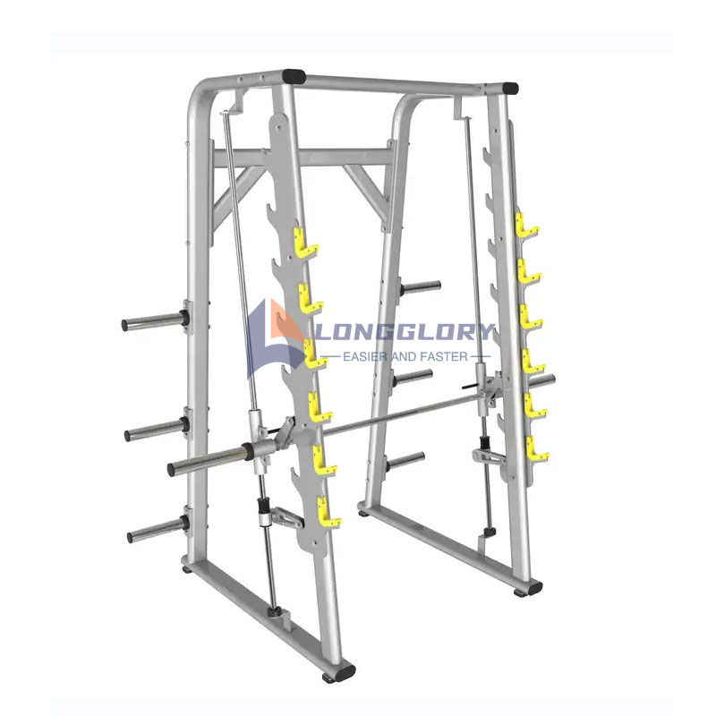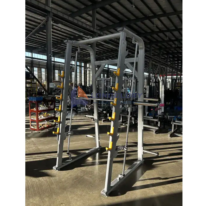 हेवी-ड्यूटी स्टीलने बांधलेले, स्ट्रेंथ ट्रेनिंग स्क्वॅट रॅक स्मिथ मशीन सर्वात तीव्र वर्कआउट्सचा सामना करण्यासाठी तयार केले आहे. तुम्ही अनुभवी फिटनेस उत्साही असाल किंवा नवशिक्या असाल, पॉवर रॅक स्मिथ मशीन तुमच्या जिममध्ये उत्तम जोड आहे. मशीनचे अष्टपैलू डिझाइन तुम्हाला स्क्वॅट्सपासून बेंच प्रेसपर्यंत विविध प्रकारचे व्यायाम सहजतेने करू देते. अर्गोनॉमिक हँडलबार आरामदायी पकड प्रदान करतात, तर ते व्यायामादरम्यान अतिरिक्त सुरक्षा प्रदान करतात.